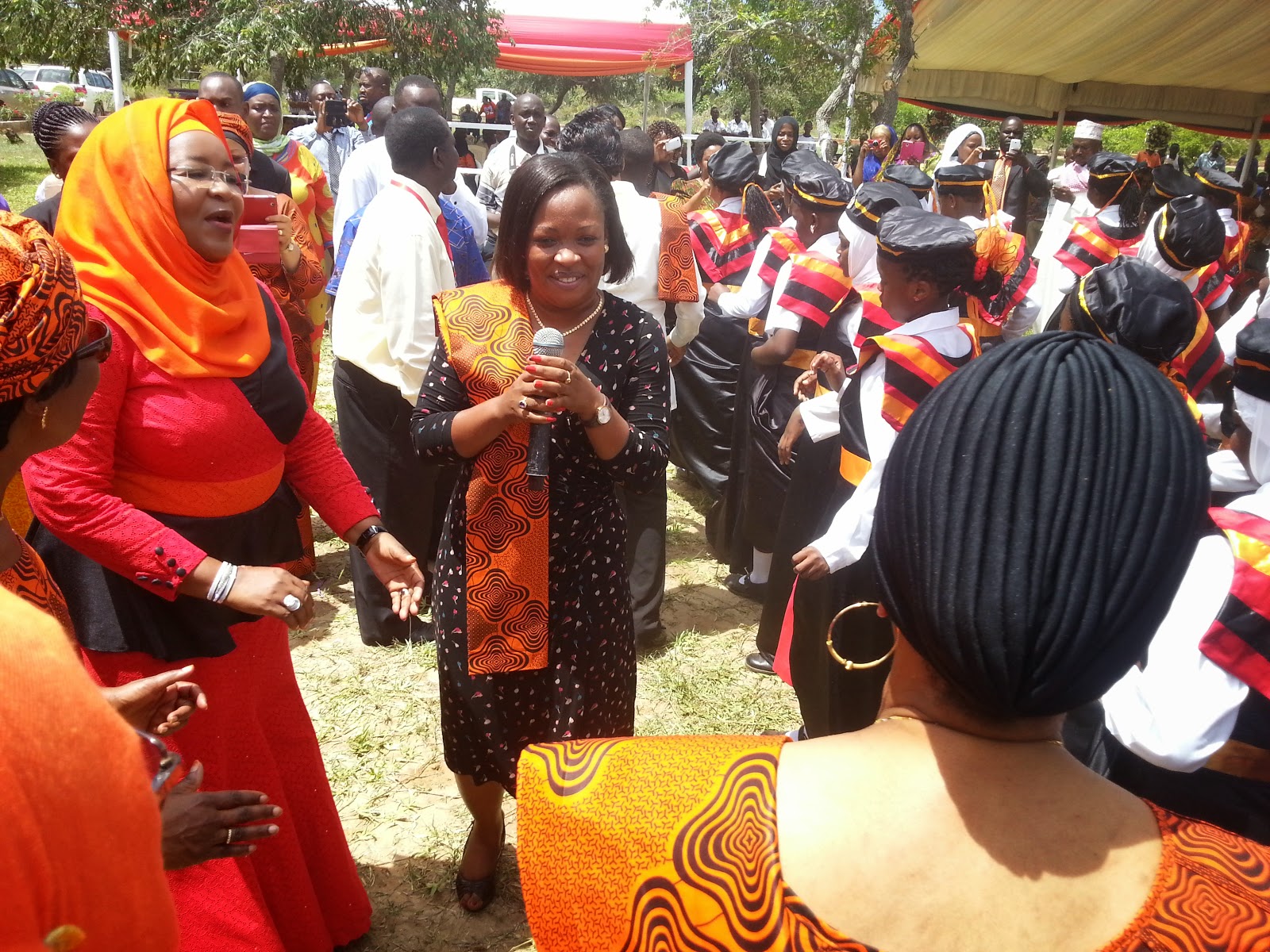 | NA SASA WIMBO ULIANZA KUCHANGAMKA NA WAHITIMU WOTE WALISAHAU KUWA NI YATIMA KWA MAANA WALIPATA MAMA WA KUWALEA YAANI MAMA SALMA KIKWETE NA HAPA WALIKUA WAKIMUITA KUMPONGEZA JAPO KWA MAUA |